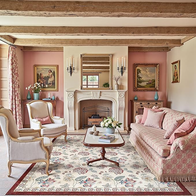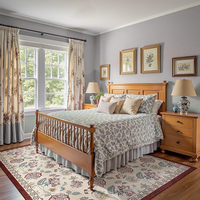 • Floral Vintage Charm: Layers of lush botanical florals framed by an ornate border bring timeless American vintage elegance to your home. The soft cream base and warm floral tones create a welcoming mood—like stepping into a sunlit garden filled with stories.