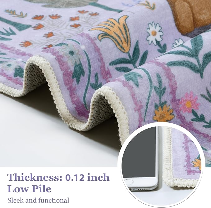 • Non-Slip & Ultra-Thin: The non-skid TPE backing can keep the rugs in place effectively, perfect for households with children, pets, or messy hobbies. This nursery rug is ultra-thin, allowing it to be easily placed under furniture