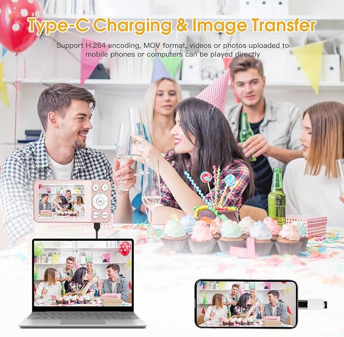 • 【Portable & Versatile Features】The portable camera is slim enough to fit in your pocket. It with rear HD selfie mirror, you can see your beautiful self from the selfie mirror, making your photos more natural and beautiful. And it supports H.264 encoding, MOV format, videos or photos uploaded to mobile phones or computers can be played directly, share beautiful moments anytime, anywhere.
