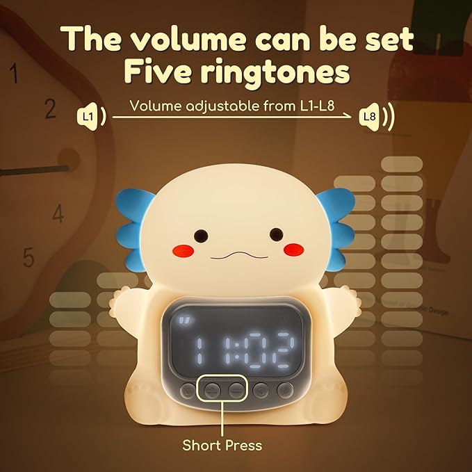 • Practical and Adorable Gift: This axolotl alarm clock is not only a practical gift that kids will love, but it also serves as a cute decoration for bedrooms, children's rooms, living rooms, or office desks