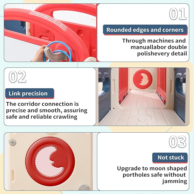 • Slide for toddlers age 1 toddler with multiple slide areas, entry steps, crawl tunnel, and hide out providing fun starter slide experience for toddlers ages 12 months 3 years