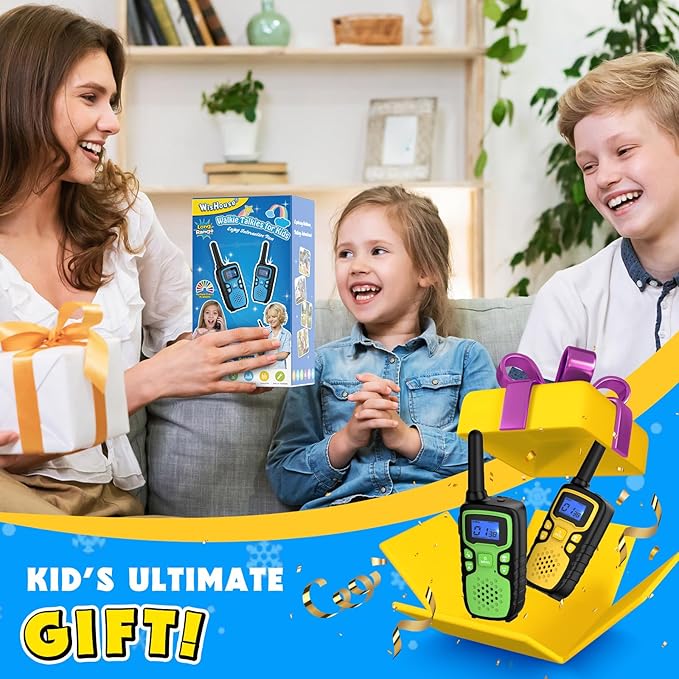 • 【Nature-Inspired Gift for Curious Kids Ages 4–10】:The green and yellow color combo makes this 2-pack walkie talkie a perfect gift for kids who love nature, camping, or imaginative play in the backyard.