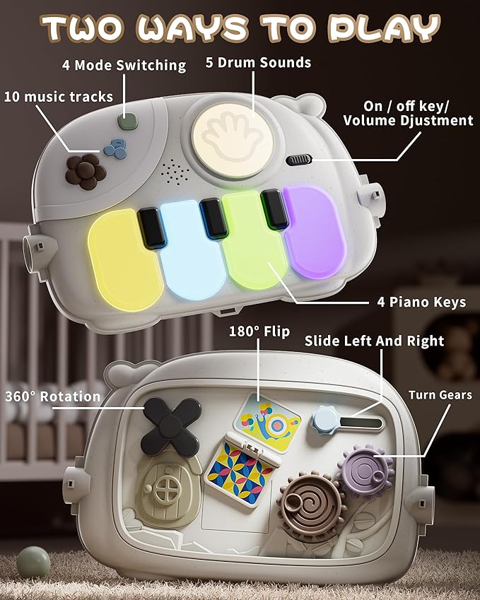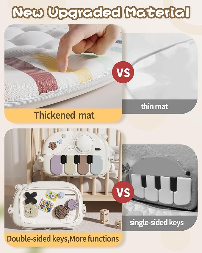 • 【Multifunctional Piano】Designed for babies aged 0-12 months, it can be used as a pedal piano. The piano has a built-in LED soft light to protect the baby's eyesight. The back can be touched and explored to develop fine motor skills.