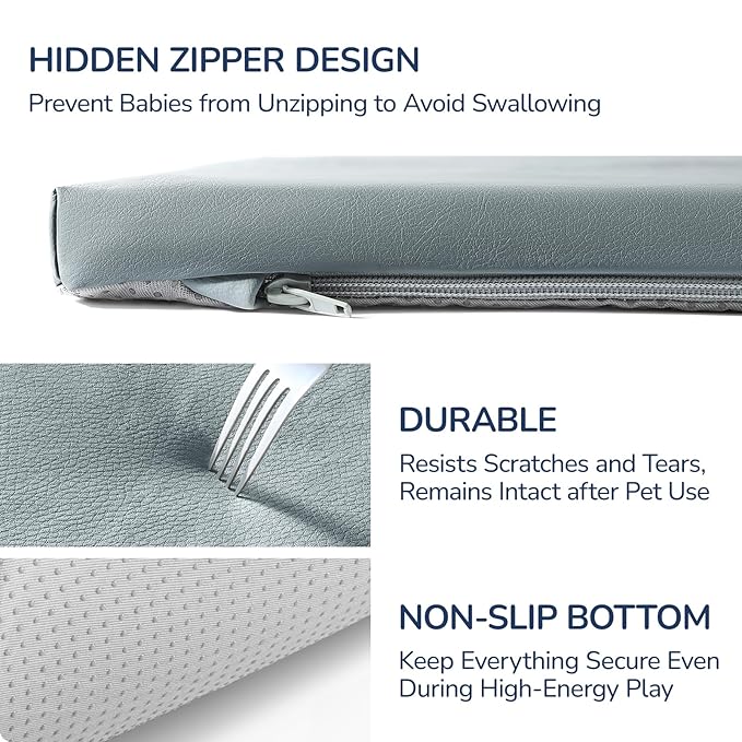 • Effective Cushioning & Ensure Safety: The baby play mat is made of 1.3'' thickened slow-rebound memory foam, which can quickly disperse the impact force when the baby falls or collides (such as head or knee hitting the ground), ensuring the baby's safety. The cushioning effect is better than traditional EPE/EVA foam pads.