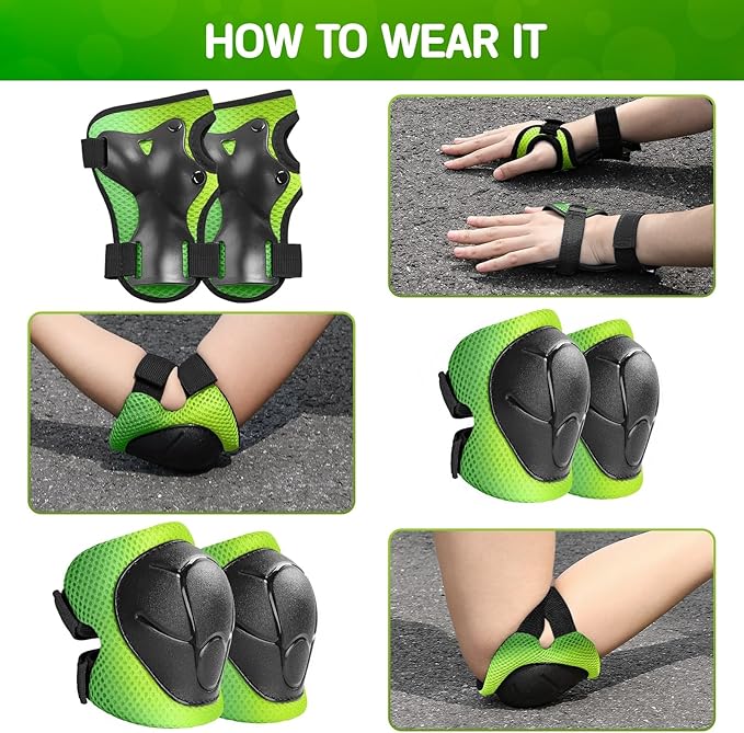 • 【HIGH-QUALITY PROTECTION】The toddler skateboard helmet set made of a sturdy PC shell and high-density shock-absorbing EPS foam. There are 8 vents on the top to keep your child's head cool and comfortable. The outer shell of the knee pads and elbow pads is made of PE material and filled with soft EVA foam to effectively cushion the impact.
