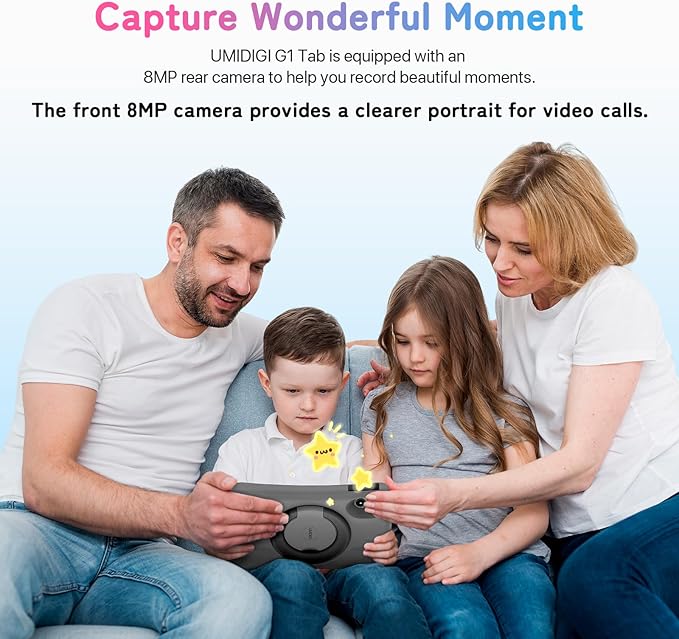 • 【Dual Camera + Large-Capacity Battery】G1 Tab with excellent 8MP rear camera + 8MP front camera, easy to record daily life and enhance parent-child interaction; 6000mAh large-capacity battery and intelligent power saving tech, with 550 hours of standby time, 52 hours of talk time and 15 hours of playtime, you can travel and hike with confidence.