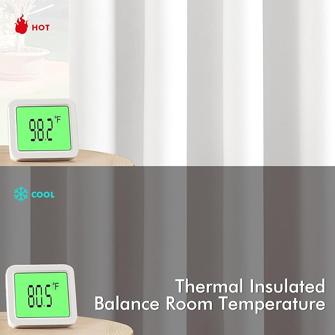 • High-Quality Material: Crafted from high-quality 225GSM polyester fabric, these curtains offer enhanced durability and elegant drape. The soft blackout material features triple-layer weaving technology, with a middle layer of black yarn for superior light blocking and privacy. Both sides feature the same refined color, ensuring a seamless look that elevates your home’s aesthetic with understated sophistication
