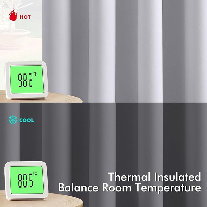 • High-Quality Material: Crafted from high-quality 225GSM polyester fabric, these curtains offer enhanced durability and elegant drape. The soft blackout material features triple-layer weaving technology, with a middle layer of black yarn for superior light blocking and privacy. Both sides feature the same refined color, ensuring a seamless look that elevates your home’s aesthetic with understated sophistication
