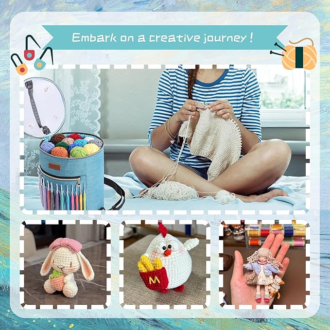 • 【MultI-Functional】Storage Bag: The crochet bag is made of study material free of bad or chemical smells. It features multiple compartment, 14 transparent crochet hooks pockets, 1 pocket for guide book, 3 pockets for knitting needles,dedicated yarn slots to neatly store hooks, yarn balls, scissors, and tools of all sizes.