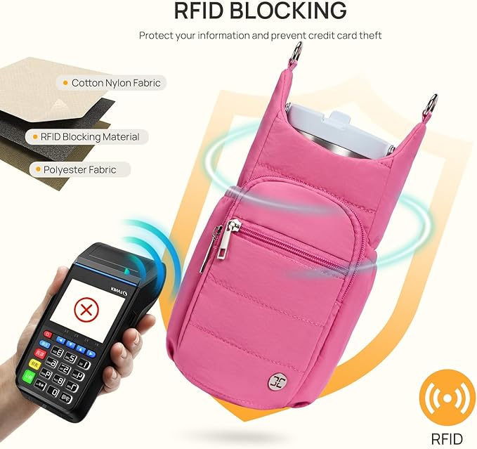 • Telena Water Bottle Bag: Made of high quality down fabric with adjustable vintage shoulder straps makes this water bottle holder classic yet stylish. The soft and waterproof down filled cotton material has better water and shock resistance while maintaining high softness and elasticity. Not only to prevent the water cup bump, but also wear light. Please note that this crossbody bag cannot be washed or machine washed