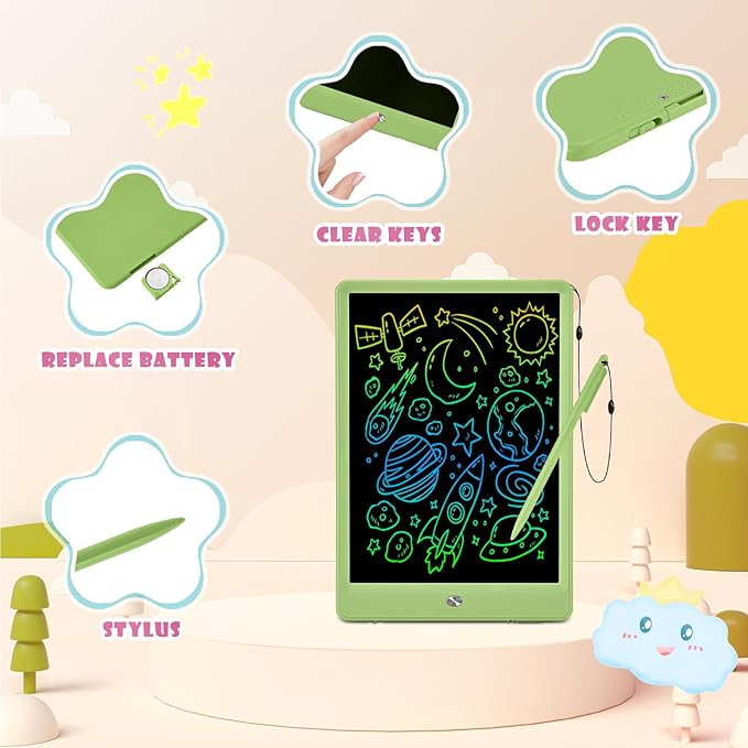 • Educational Resources: The doodle board is a wonderful gift for 3 4 5 year old boys. The lcd writing tablet is a good educational learning toy, which helps children free their imagination and creativity, making kids' childhood more colorful