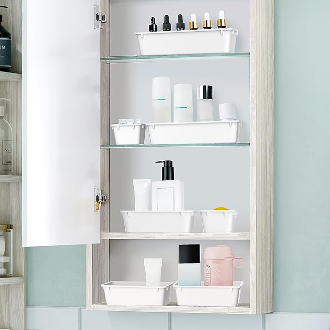 • 4 Combinations of Different Sizes: A set of cabinet organizer includes 25 storage bins of 4 different sizes. Includes: 9 x 6 x 1.8 inches (3pcs), 9 x 3x 1.8 inches(6pcs), 6 x 3 x 1.8 inches(8pcs), 3 x 3 x 1.8 inches(8pcs).