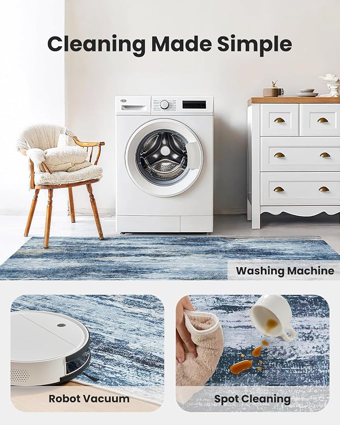 • 【Durable and Easy to Clean】This living room rug features a 0.24″ low-pile design with double-stitched edges for durability and easy maintenance. It’s easy to clean with a standard vacuum or robotic vacuum. For a deeper clean, this rug is machine washable. Ideal for high-traffic areas.