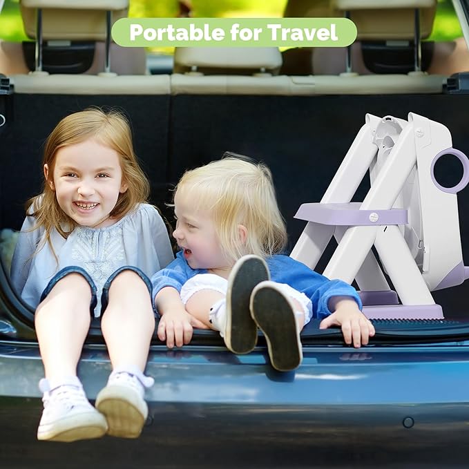 • 2-in-1 Usage : Our multifunctional toilet seat can be used as a step stool for children to reach higher places in addition to being a training toilet ladder. It is convenient for your kids to wash their hands or take things. The product is light and convenient for children to carry by themselves, and the foldable design makes it easy to store.