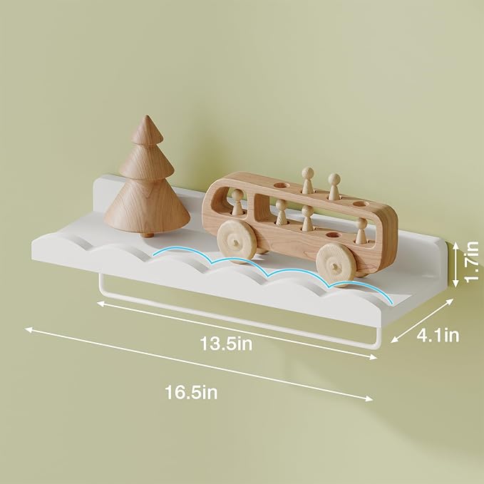 • 【Natural Wood & Anti-Crash Design】Our nursery shelves are Made of long-lasting solid pine wood, these floating book shelves are built to last and provide a reliable storage solution for your children's favorite items. With smooth edges and anti-crash design, this bookshelf not only organizes your child's books and toys but also adds a touch of safty and creativity to their space.