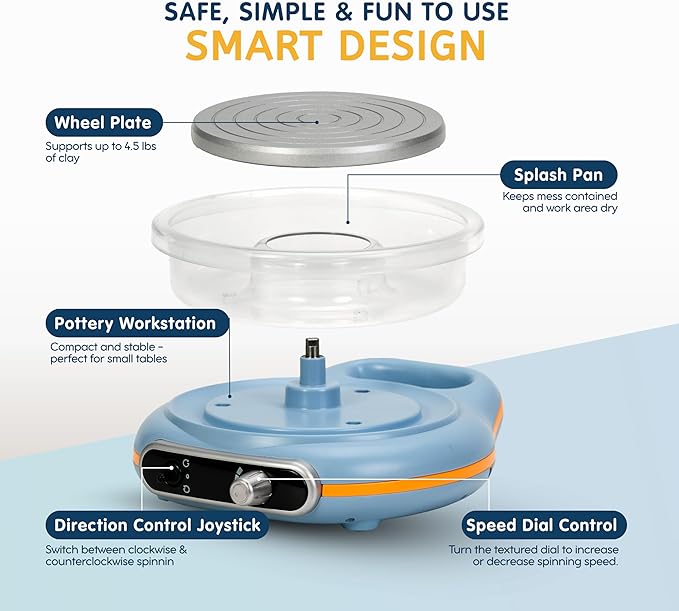 • THE GIFT THAT CREATES MEMORIES : Surprise your child with this fun and educational pottery wheel kit. It’s the perfect gift for birthdays, holidays, or any occasion, encouraging creativity and imagination. Great for art kit collectors, kids who love craft, and beginner pottery artists. Give them the tools to make it real and create pottery masterpieces with this best pottery wheel kit for kids and beginners exploring clay turning wheels.