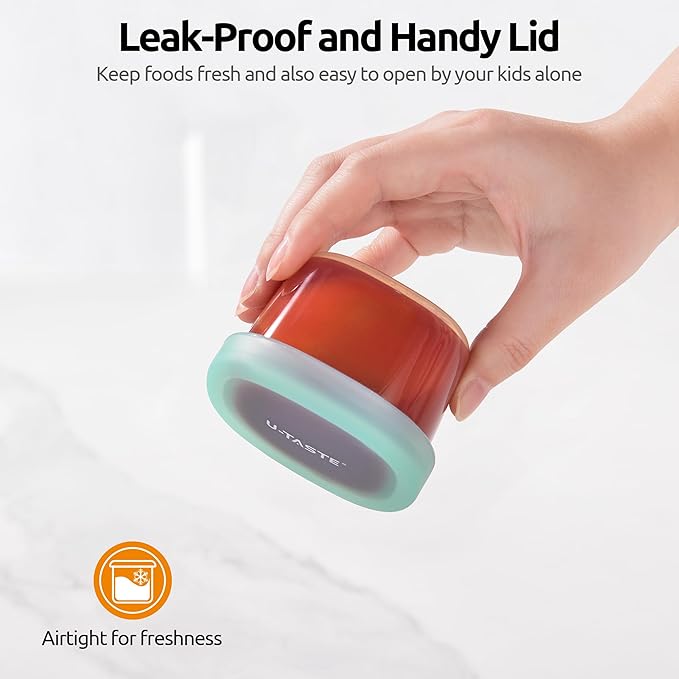 • [Food Grade Liquid Silicone] U-Taste small food container is made of food safe liquid silicone, ensuring heat resistance from -40°F to 446°F (-40°C to 230°C) for safe use in microwave and freezer. Do not have to worry about breaking, cracking or scratched issues! Compared with glass storage boxes, our silicone food containers are lighter and portable for storing food. Compared with plastic containers, our sauce containers are healthier, more flexible for both hot and cold food.