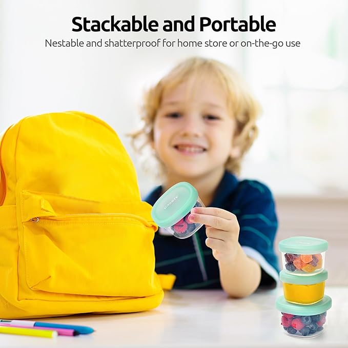 • [Great Size for Small Food] With its little size design, this silicone container is lightweight and easy to carry for packing snacks, or leftover storage for little oness’ lunch box, camping, or on-the-go use. U-Taste food containers designed with oz and ml measurement. There is a 20ml extra capacity for precise scale with greater confidence and prevent spillage. Small food containers are nice for dipping sauce, condiment, storing snacks, puree, nuts, fruit slice, ice cream, yogurt, onion, bean.
