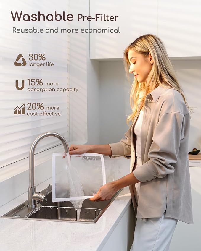 • Pet-Friendly 4-Layer Filtration:The advanced air purifier filter system traps particles as small as 0.03μm, removing 99.99% of pet dander, hair, and dust. Washable pre-filter (6-12 month lifespan) cuts replacement costs by 30%—effortlessly traps pet hair & debris, making it a top practical choice for home use.