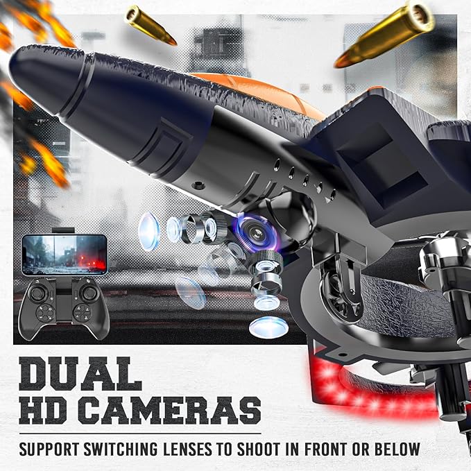 • Automatic Altitude Hold: Effortlessly maintain your drone's altitude with our automatic altitude hold technology. This innovative feature keeps your rc plane or rc helicopter hovering at a consistent height, allowing you to focus on executing intricate maneuvers and capturing stunning aerial footage, making it perfect for drones for kids 8+