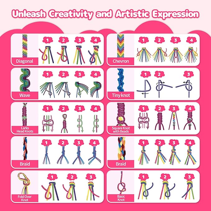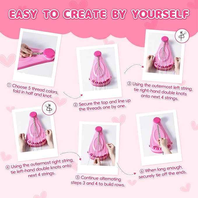 • [Easy To Create By Yourself]: Our clever clip-and-slot loom holds threads securely and organized for frustration-free crafting. Kids jump right in and find success thanks to our easy-to-follow guide! The full-color booklet lets beginners to pros quickly master bracelet-making solo or during family craft time. Mix-and-match charms, letters, and clay beads spark endless combos—unlock creativity and color skills to create anything from name bracelets to themed keepsakes they can't wait to show off.