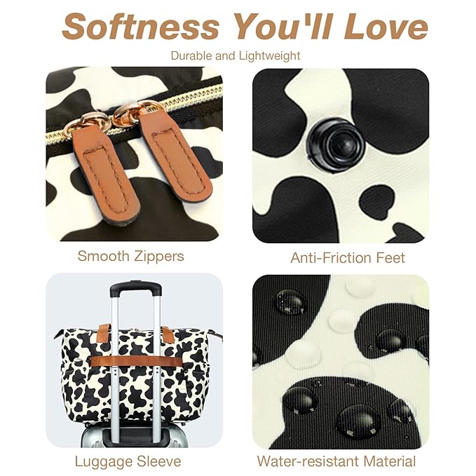 Diaper Bag Tote, Large Baby Diaper Bags for Travel, Hospital Bag for Labor Delivery with Pacifier Case, Changing Pad, Shoulder Strap, Cow Print