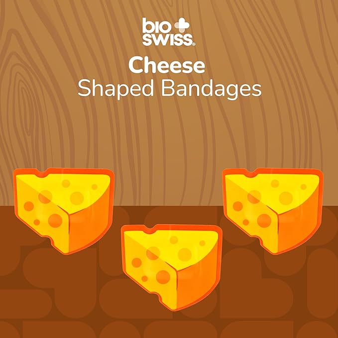 BioSwiss Bandages, Cheese Shaped Self Adhesive Bandage, Latex Free Wound Care, Fun First Aid Kit Supplies for Kids and Adults, 24 Count