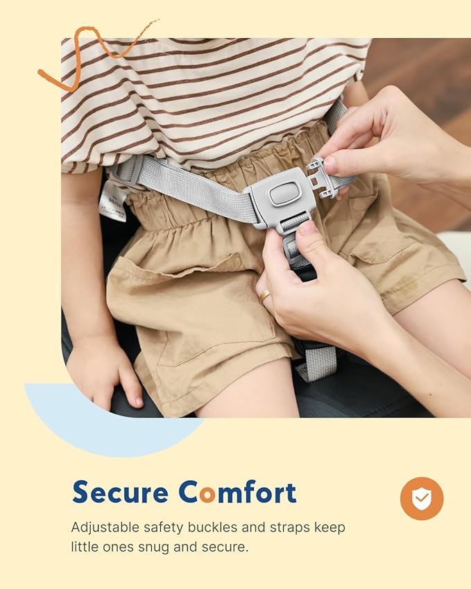 • Secure & Stable: 3-point adjustable harness with front buckle and non-slip base ensures secure fit on booster seat for kitchen chair. Support kids for worry-free mealtimes