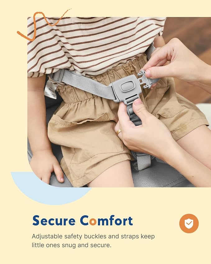 • Secure & Stable: 3-point adjustable harness with front buckle and non-slip base ensures secure fit on booster seat for kitchen chair. Support kids for worry-free mealtimes