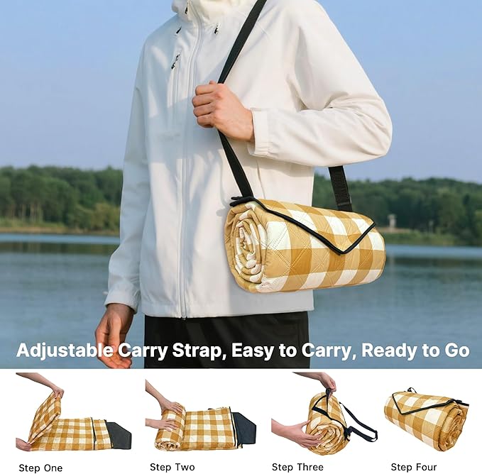 • Water & Dirt Resistant: Our camping blanket is made for outdoor conditions. The top layer is water-repellent and stain-resistant. Just shake off drinks, dirt, or sand after use. The waterproof base blocks moisture and insulates against heat or cold from the ground, keeping you dry and comfortable at the park, beach, campsite, or backyard.