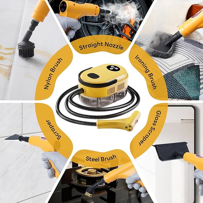 • Easible Whole-house Cleaning Solution: Handheld Steam Cleaner with an ultra-long 118-inch power cord and a 78-inch steam hose, enjoy a wider cleaning range. This enables you to easily access and clean the most inaccessible areas.