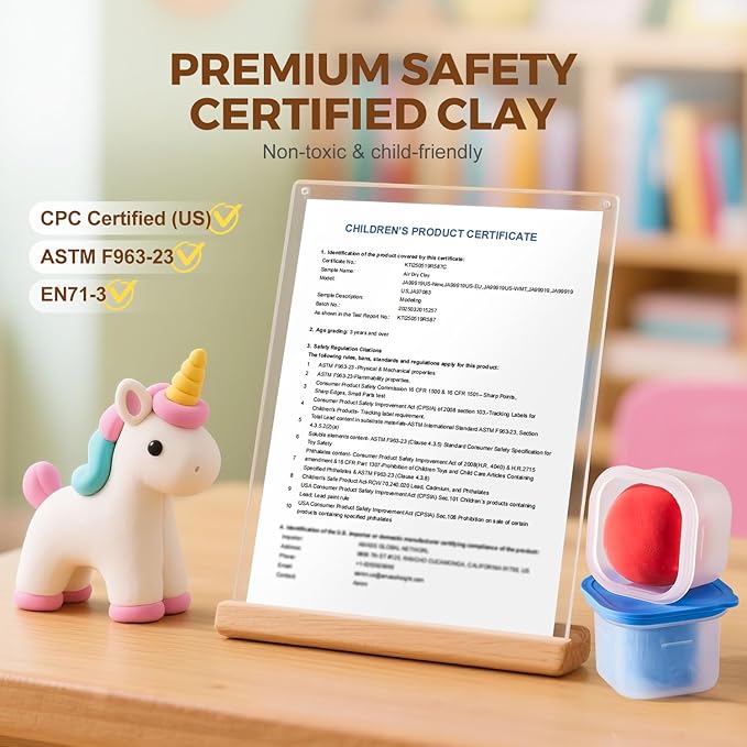 • Non-Toxic & Kid-Friendly Formula: Made with child-safe ingredients and tested to meet safety standards, this modeling clay is non-toxic and gentle on little hands—ideal for ages 3 and up.