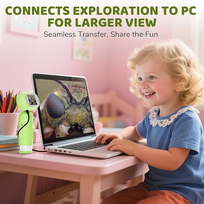 • 【Visual Protection & Vivid Viewing】Designed with a child-friendly 2" HD IPS screen and 8-level adjustable brightness, our microscope for kids delivers vibrant, clear images while effectively reducing eye strain—ideal for young learners and kids aged 3–12 during extended exploring sessions.