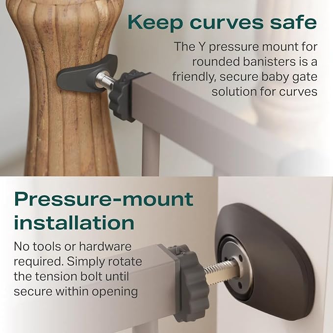• Stair-Ready with Y-Bolts & Smooth Pedal Step: Includes Y-shaped bolts for secure, no-drill mounting on round stair railings. The low-profile step-over pedal lets strollers roll through effortlessly—ideal for busy families on the go.