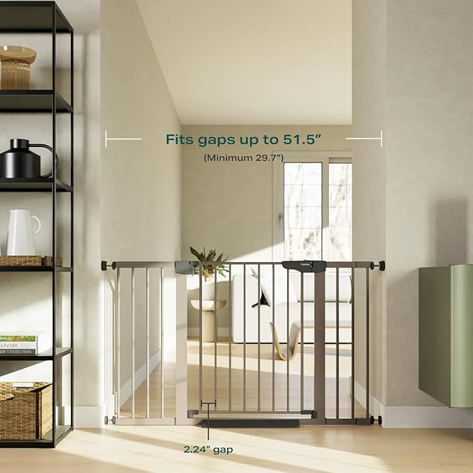 • Extra Wide Walk-Through for Easy Access: Fits openings from 29.7" to 51.5" wide and stands 30.5" tall. The 23.6-inch walk-through door provides more clearance than standard gates—allowing adults to pass through easily, even when holding a baby or carrying items.