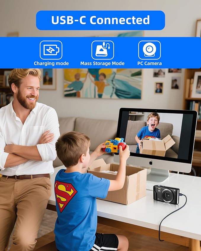 • ๐ŸŽฅ Creative Modes & Webcam Function: Versatile and Fun โ€“ This digital vlog camera for kids teens boys girls comes packed with features like beauty filter, smile capture, slow motion, time-lapse, and more. It also doubles as a webcam for live streaming, video calls, or online learningโ€”perfect for YouTubers and everyday creators.