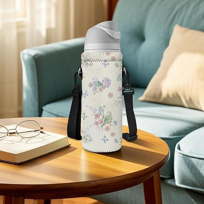 RICHEN Neoprene Water Bottle Carrier Bag with Adjustable Shoulder Strap,Insulated Water Bottle Cover for Stainless Steel/Glass/Plastic Bottles