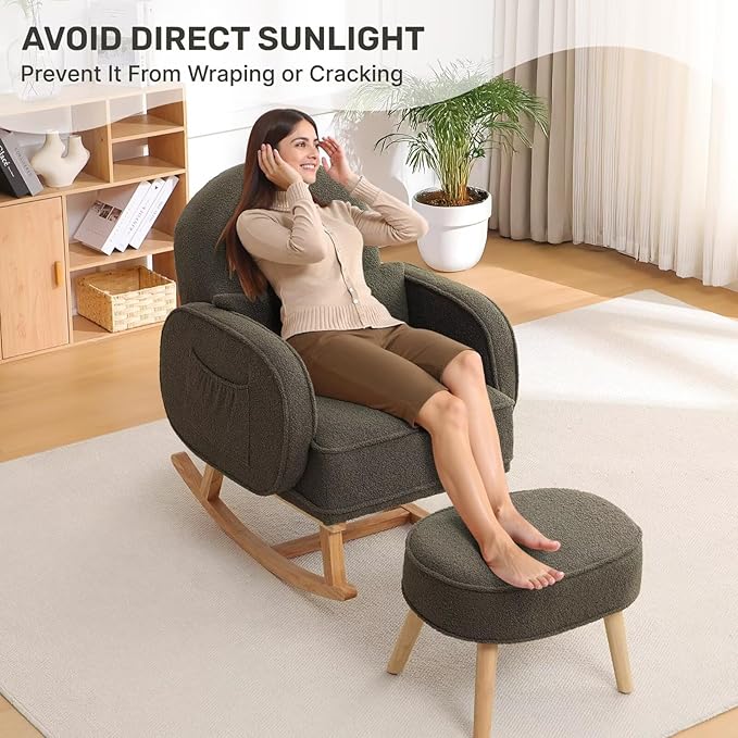 • DURABLE & EASY MAINTENANCE: Made from high-quality Teddy, this rocker chair boasts excellent breathability and is resistant to wear and pilling, providing long-lasting durability. The wrinkle-resistant surface makes cleaning a breeze, so you can relax and enjoy your chair without any hassle