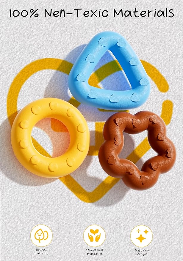 • Variety of Easy-Grip Shapes: Large crayons in triangular, round, and pentagon shapes fit little hands perfectly, promoting proper grasp and strengthening fine motor skills.