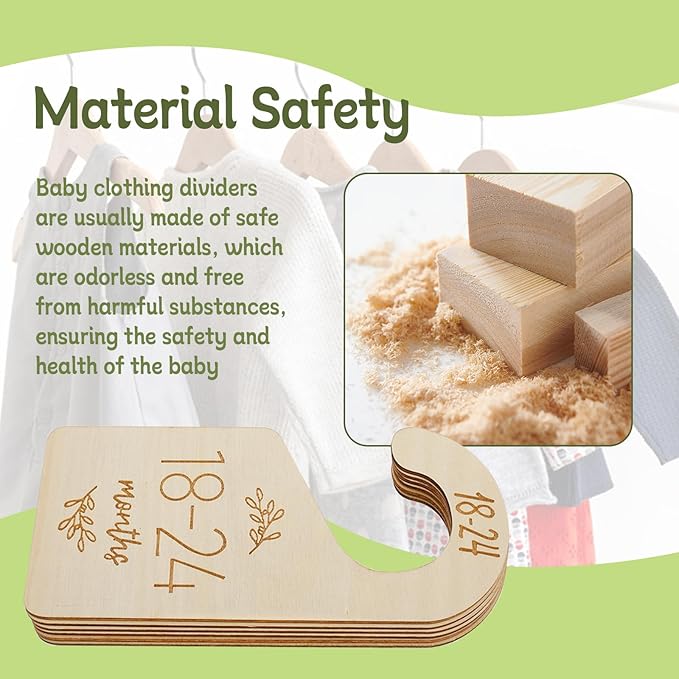 • Double-sided Design: Each baby closet divider is crafted on both sides for easy access to clothing from any angle. The baby closet dividers are made of wood and feature a green pattern and modern lettering, making them both attractive and functional