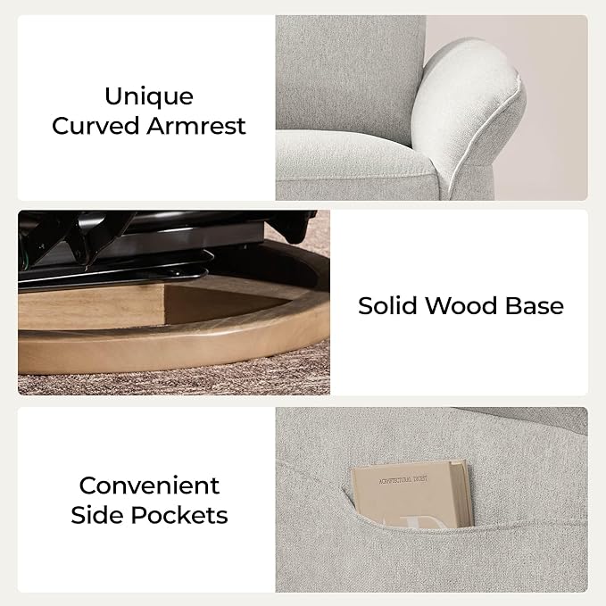 • Luxury Triple-Motor Power Swivel Nursery Glider: Elevate your nursery experience with this advanced power recliner chair, engineered for unparalleled comfort. A triple-motor power control system enables 270° swivel, smooth gliding and effortless 90-135° recline at the push of a button. Adjustable power headrest and lumbar support eliminate the need for extra pillows, cradling your body in every position.