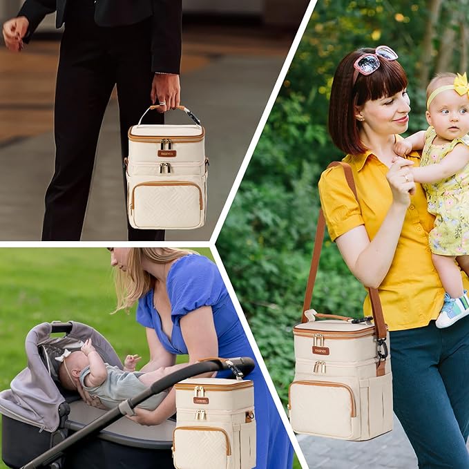 • Smart Double-Layer Organization & Versatile Use:Size of the breastmilk cooler bag is 9.2"D x 8.5"W x 11.2"H,maximize storage with dual compartments holding 6 bottles (9 oz each) and wearable pump or snacks. Perfect as a breastmilk cooler bag, daycare lunch box, or portable snack organizer. Keep essentials separated and secure for on-the-go convenience.