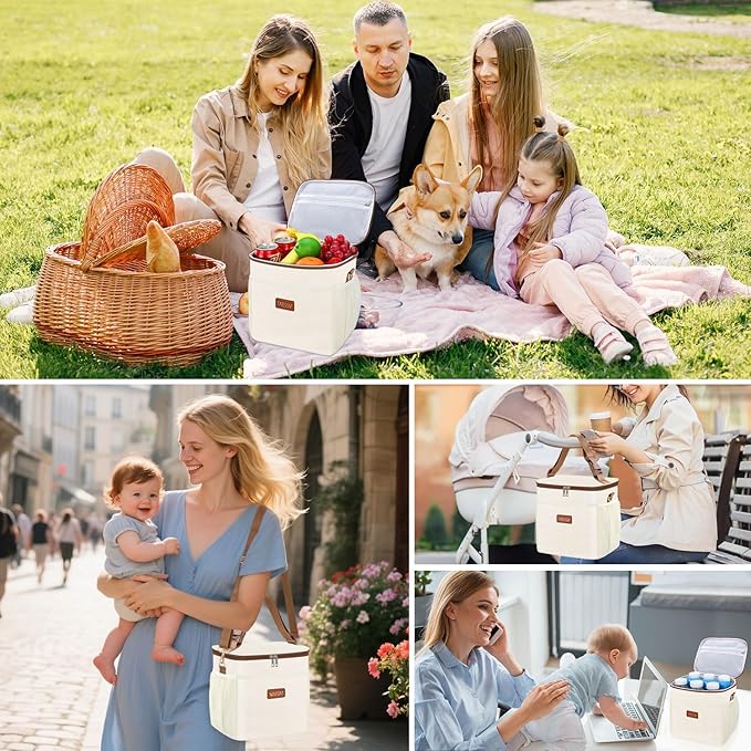 • 👍【MULTI LAYER INSULATION DESIGN】Beige breast milk cooler is made of 4 layers of materials, food grade EVA lining, environmentally friendly non-woven fabric interlayer, 5mm insulated pearl cotton middle layer and 900D waterproof polyamide outer layer, providing excellent cold/ heat insulation performance for this breastmilk storage bag cooler. Paired with an accompanying fresh-keeping ice pack, ensuring breast milk or baby food remains at a constant temperature for a long time!