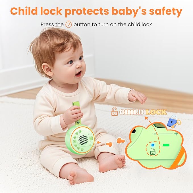 • Adjustable volume:You can set the volume to your favorite level. This baby sound machine is equipped with a safety child lock to prevent small hands from accidentally changing the volume, sound or light settings