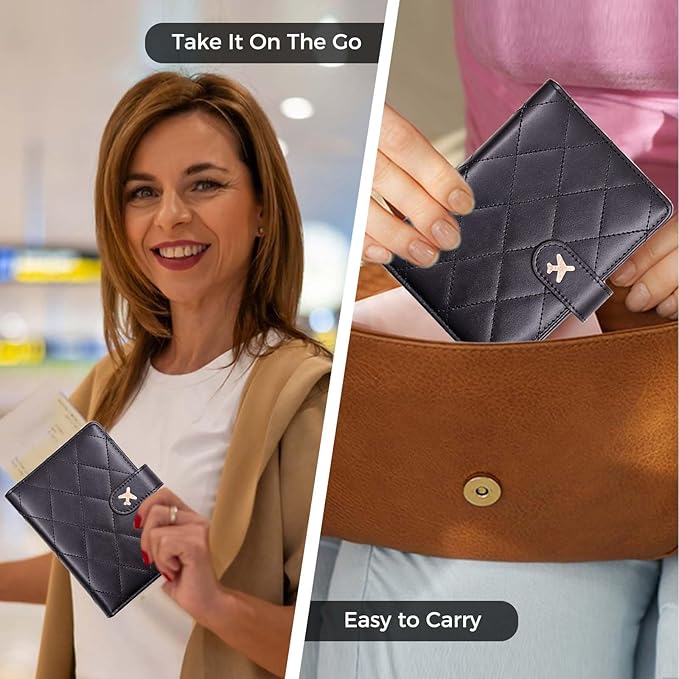 • 【Snap Button Closure and Security Protective】The passport holder with the hidden magnetic snap button closure design, which is safe and reliable to protect your travel items from being lost,to provide dual protection.Besides,RFID blocking shield material inside, Our passport case has a material engineered specifically to block 13.56 MHz or higher RFID signals and protect our important private information stored on your passport and credit cards from unauthorized scans.