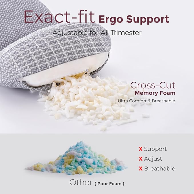 • Lightweight and compact, our pregnancy belly pillow is designed for on-the-go comfort. Easily pack it for travel to alleviate body discomfort and reduce fatigue, ensuring a restful night's sleep without the need for constant tossing and turning