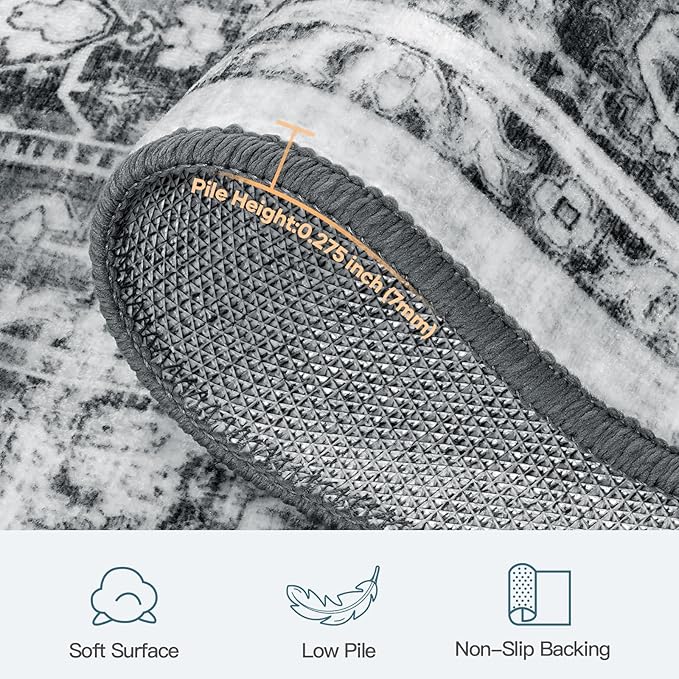 • Non-Slip Backing: The built-in TPR (Thermoplastic Rubber) backing keeps the area rug securely in place while protecting your floors. Even with active kids or playful pets, it stays put – perfect for homes with children and pets