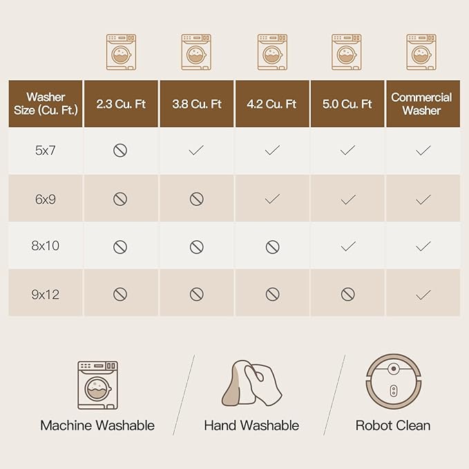 • Machine Washable Rug: This low-pile area rug resists pet hair and debris and is easy to clean—simply vacuum, sweep, or wipe between machine washes, saving you time and effort. Care Tips: Cold gentle cycle. Mild detergent only. Tumble dry low or air dry