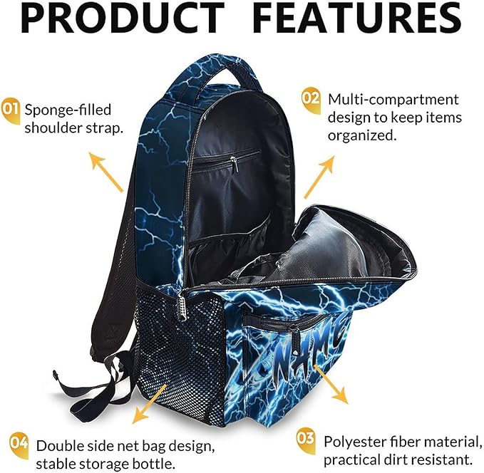 • COOL LIGHTNING BACKPACK DESIGN: In addition to practical use, this schoolbag is also printed with vivid patterns, and we also offer customization options. Click on "Customize Now" to add personalized customized information to your backpack