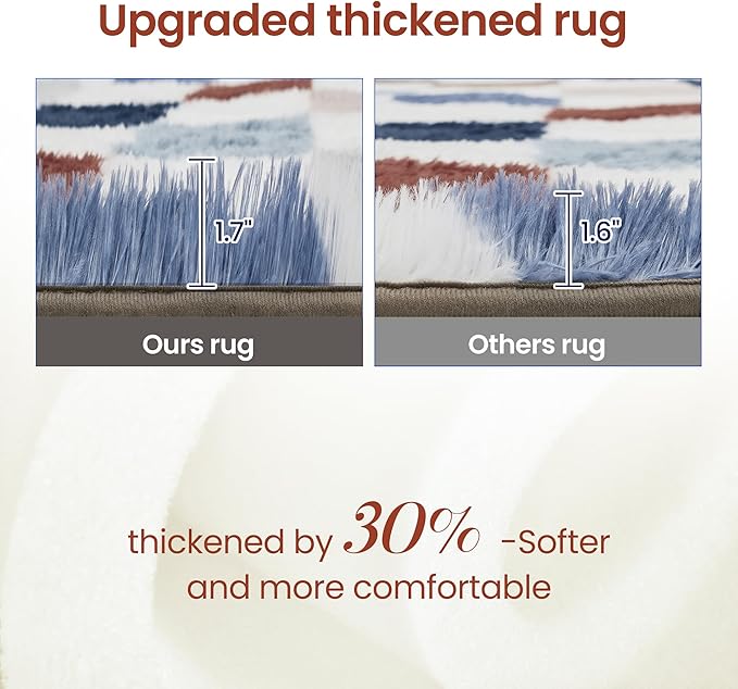 • SUPER FLUFFY- TOOHUB's Fluffy checkered rug is made with high pile, super long and super fine wool and padded memory foam cotton. It gives your feet a cloud-like comfort. You will be surprised not only by the design of the rug but also by its fluffiness and softness. Perfect for families with small children or pets.